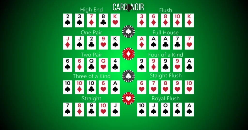 Một trong những phần quan trọng nhất của luật chơi poker là hiểu thứ tự mạnh yếu của tay bài. Từ cao xuống thấp: Royal Flush, Straight Flush, Four of a Kind, Full House, Flush, Straight, Three of a Kind, Two Pair, One Pair, High Card. Tuy nhiên, học thuộc tên chưa đủ; bạn cần hiểu cách so bài khi trùng loại. Ví dụ cùng One Pair thì so giá trị đôi trước, nếu vẫn bằng nhau mới so kicker. Cùng Flush thì so lá cao nhất, rồi đến lá tiếp theo nếu cần.